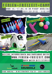 Tägliche Ferienbetreuung für Kinder von 6 bis 14 Jahren von 09.00 bis 16.00 Uhr im Pin Up Koblenz.Am Donnerstag auch ein Eltern Kind Bowling gegen 14 Uhr.